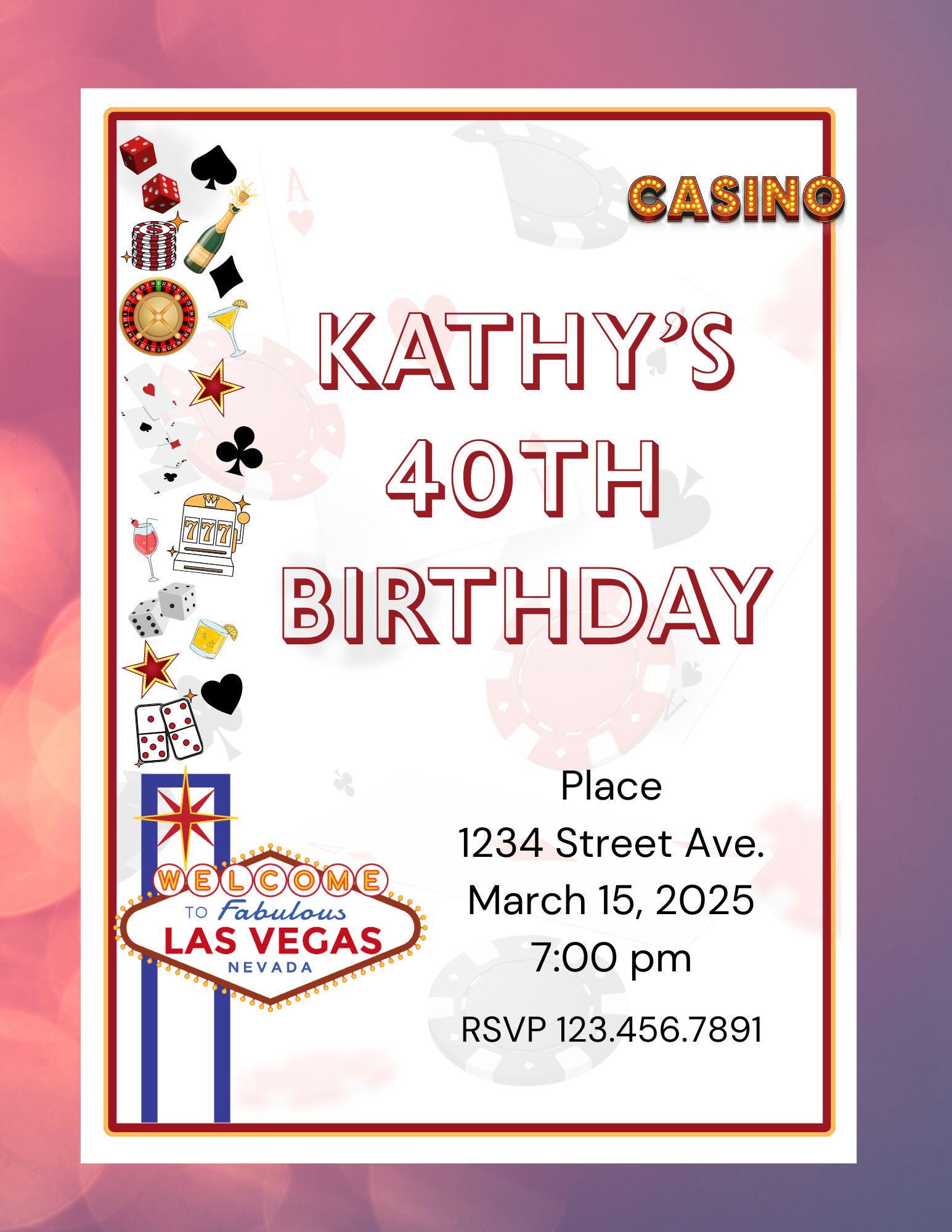 Viva Las Vegas! Poker, slots, drinks, and party! Edit this custom 5x5 invitation with your own details.