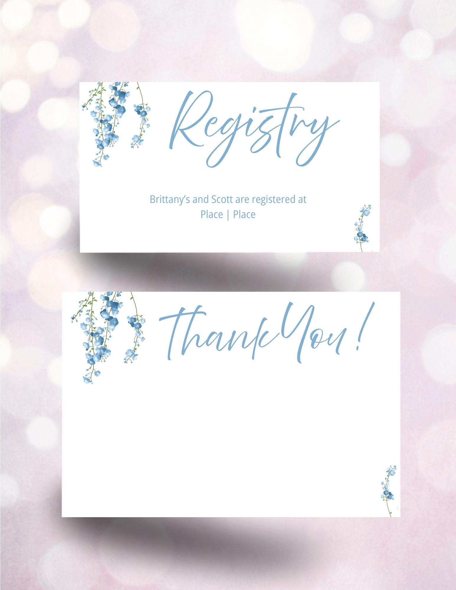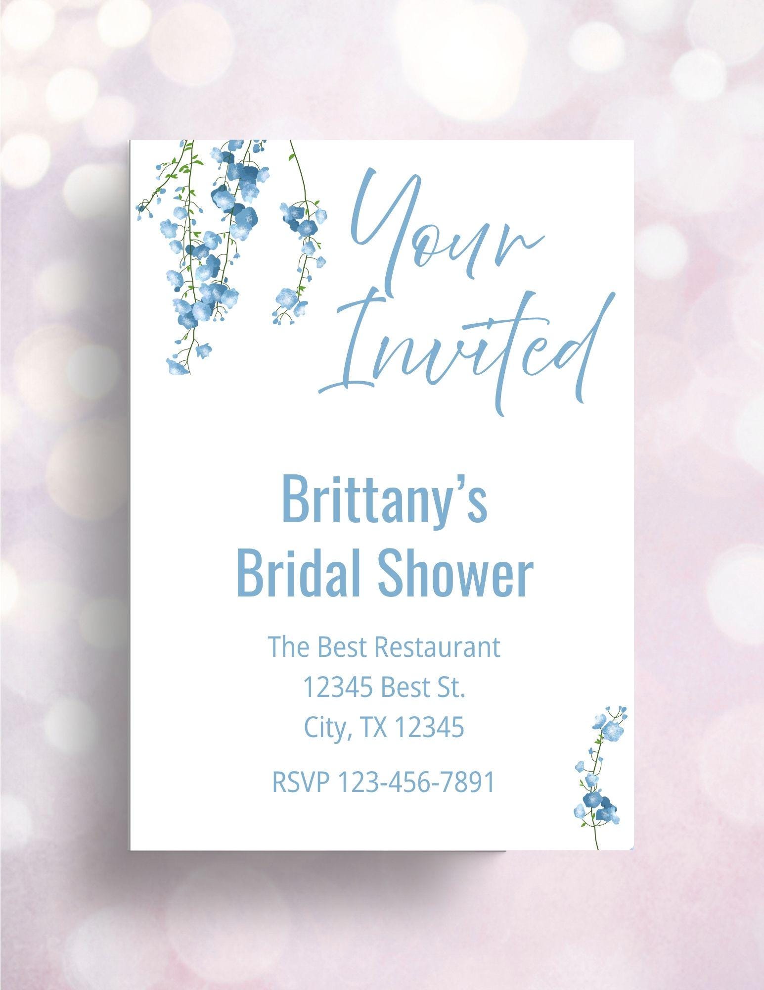 She's simple but beautiful. This is a simple classy invitation with blue flowers hanging from the top. Matching registry and thank you cards. Edit this custom invitation with your own details.