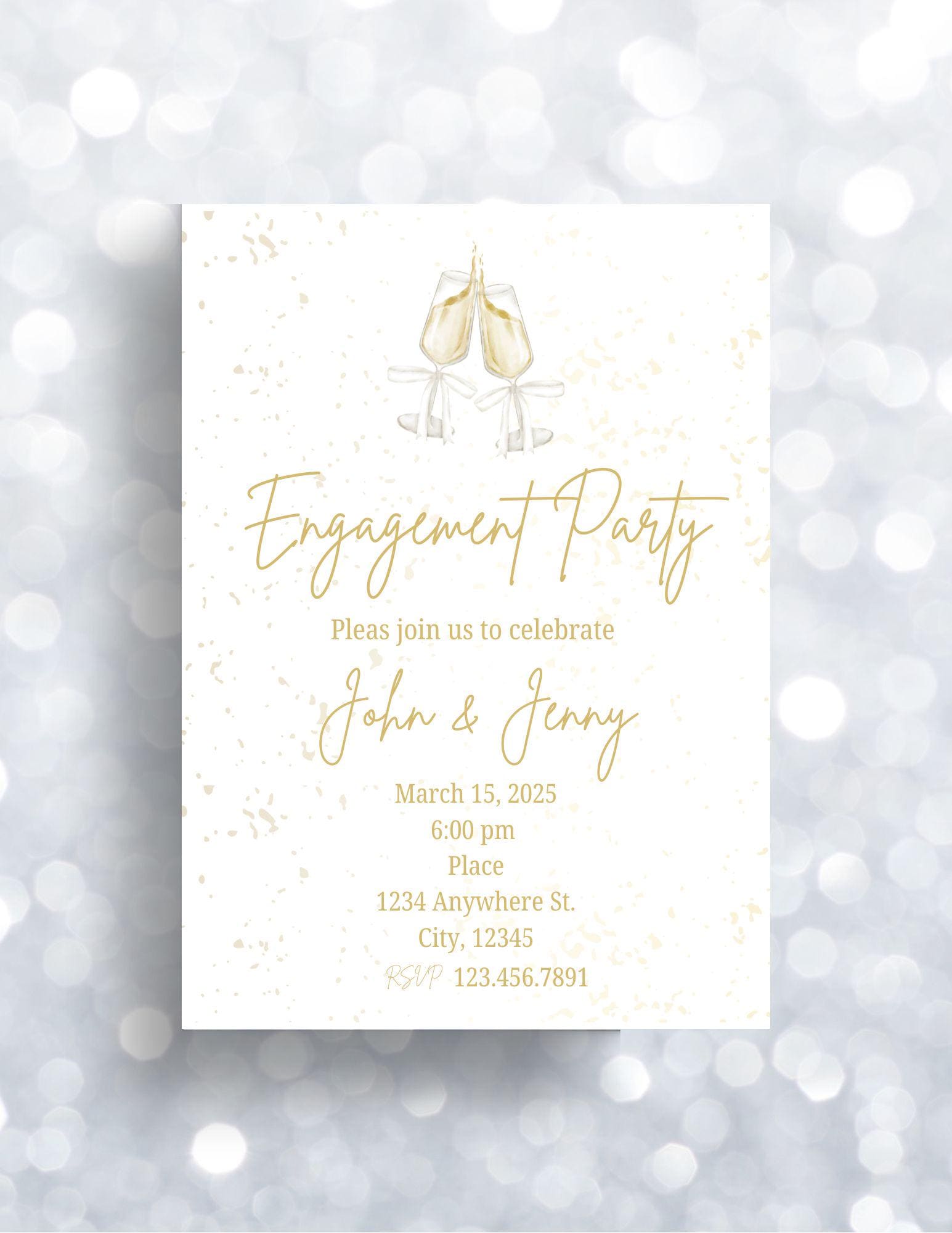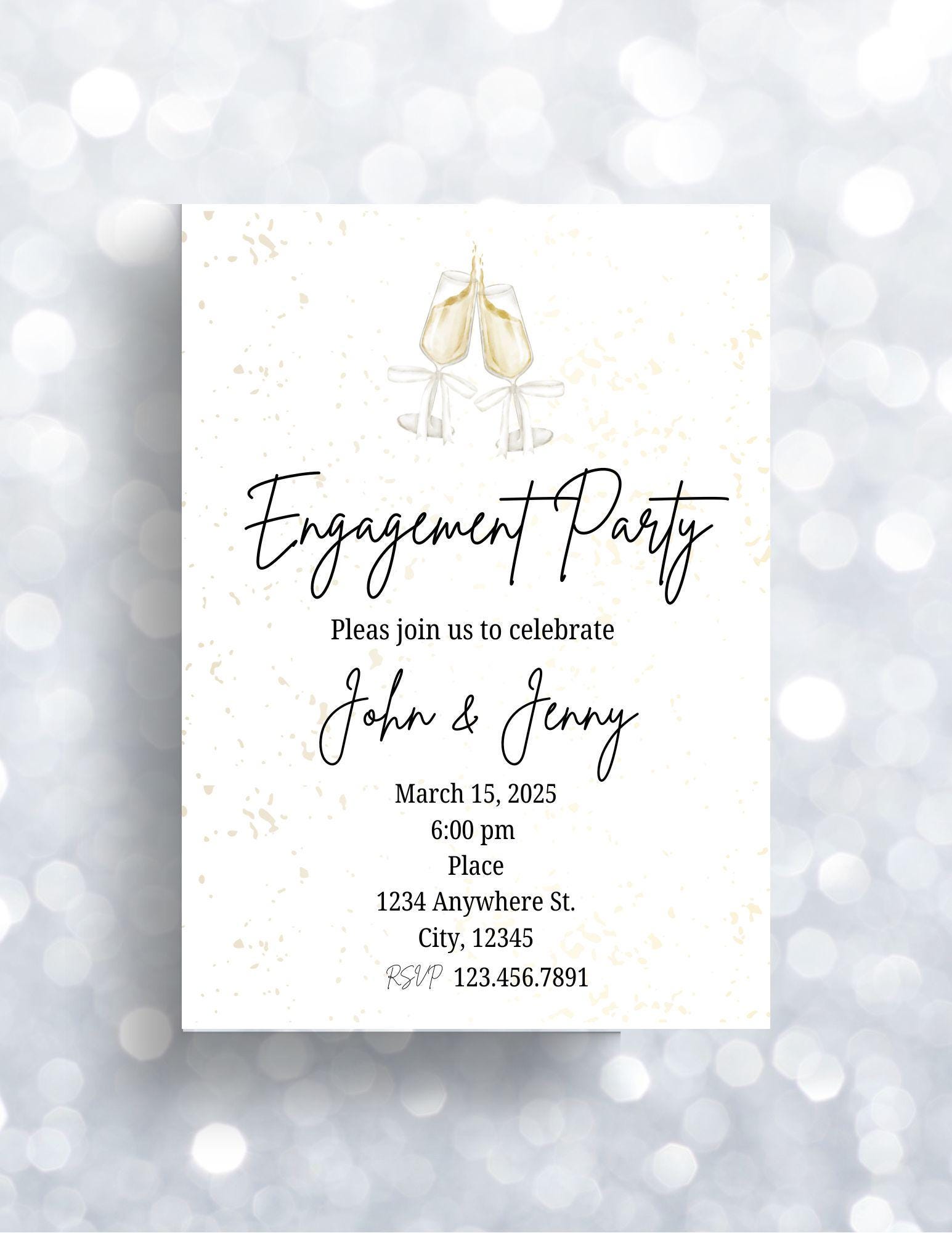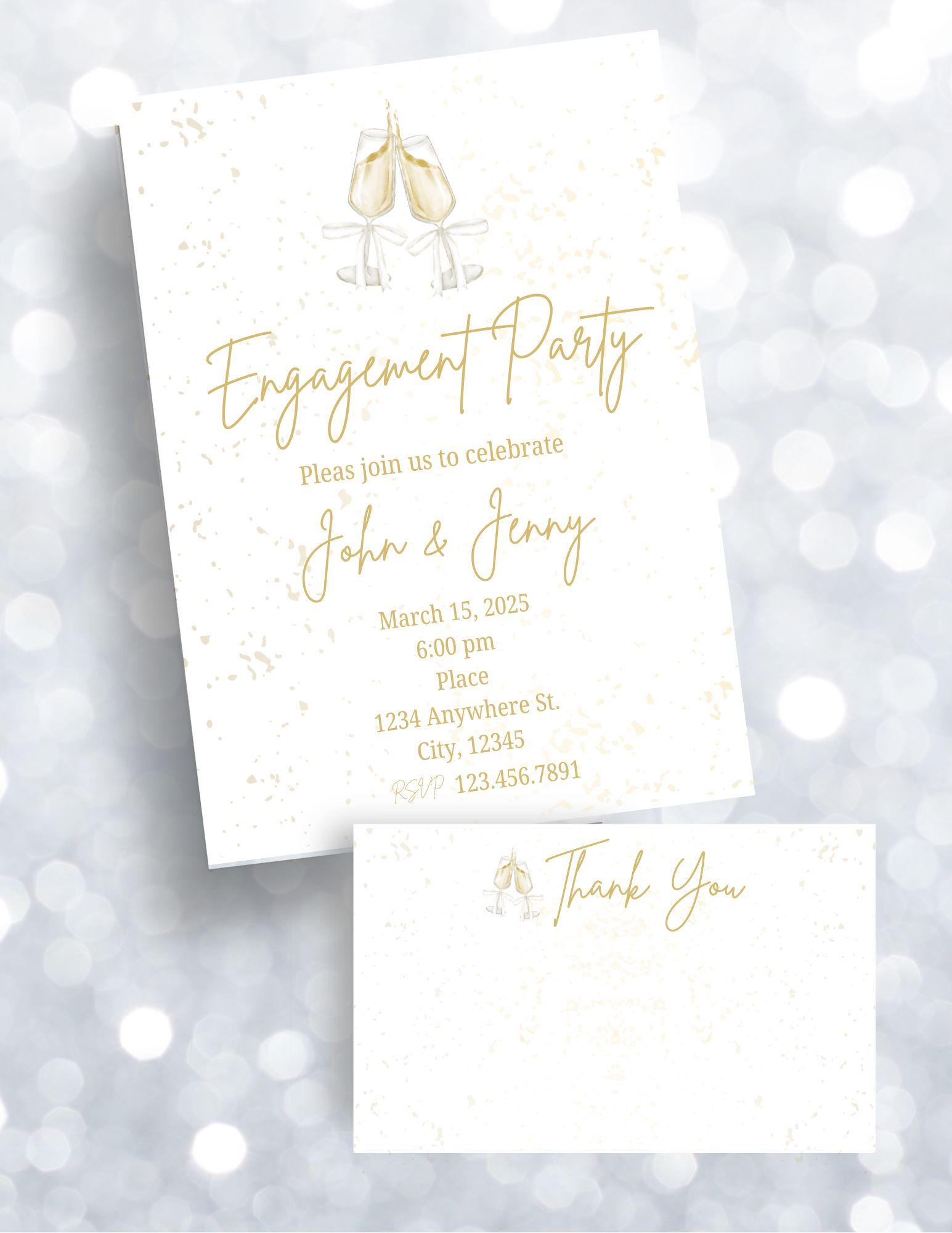Cheers to love! Toast the couple with this invitation. Edit with your own details. Invitation and thank you card included in download.