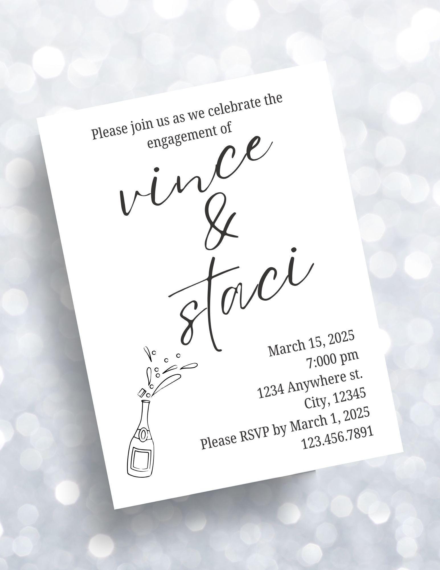 Let's pop the bubbly and celebrate the couple. This invitation is simple but elegant. Edit this 5x7 custom digital invitation with your own details.