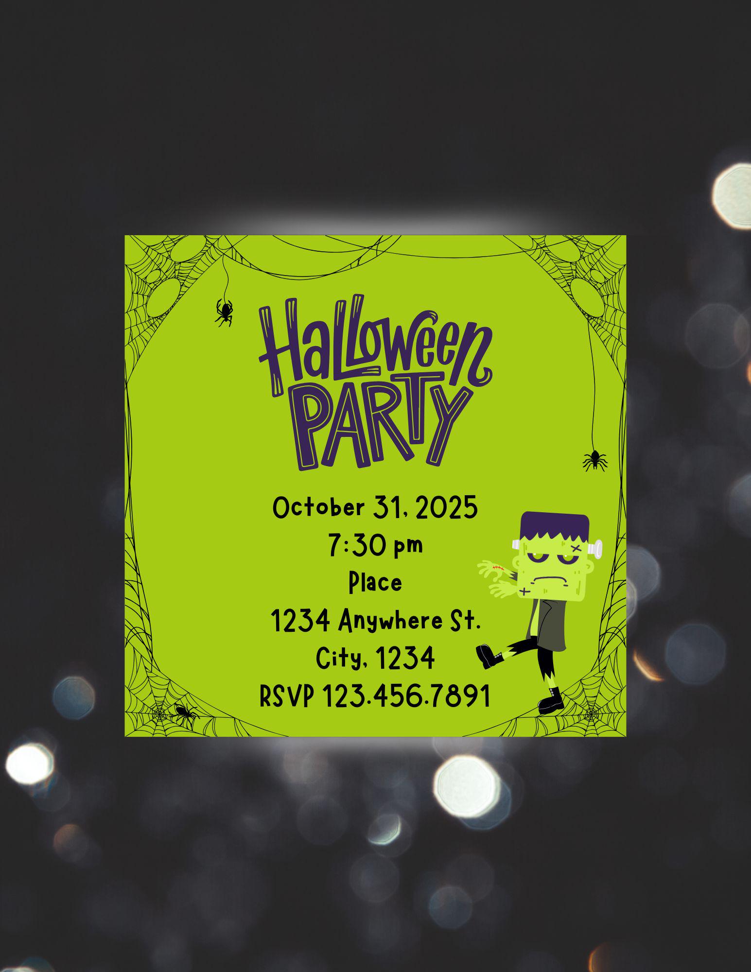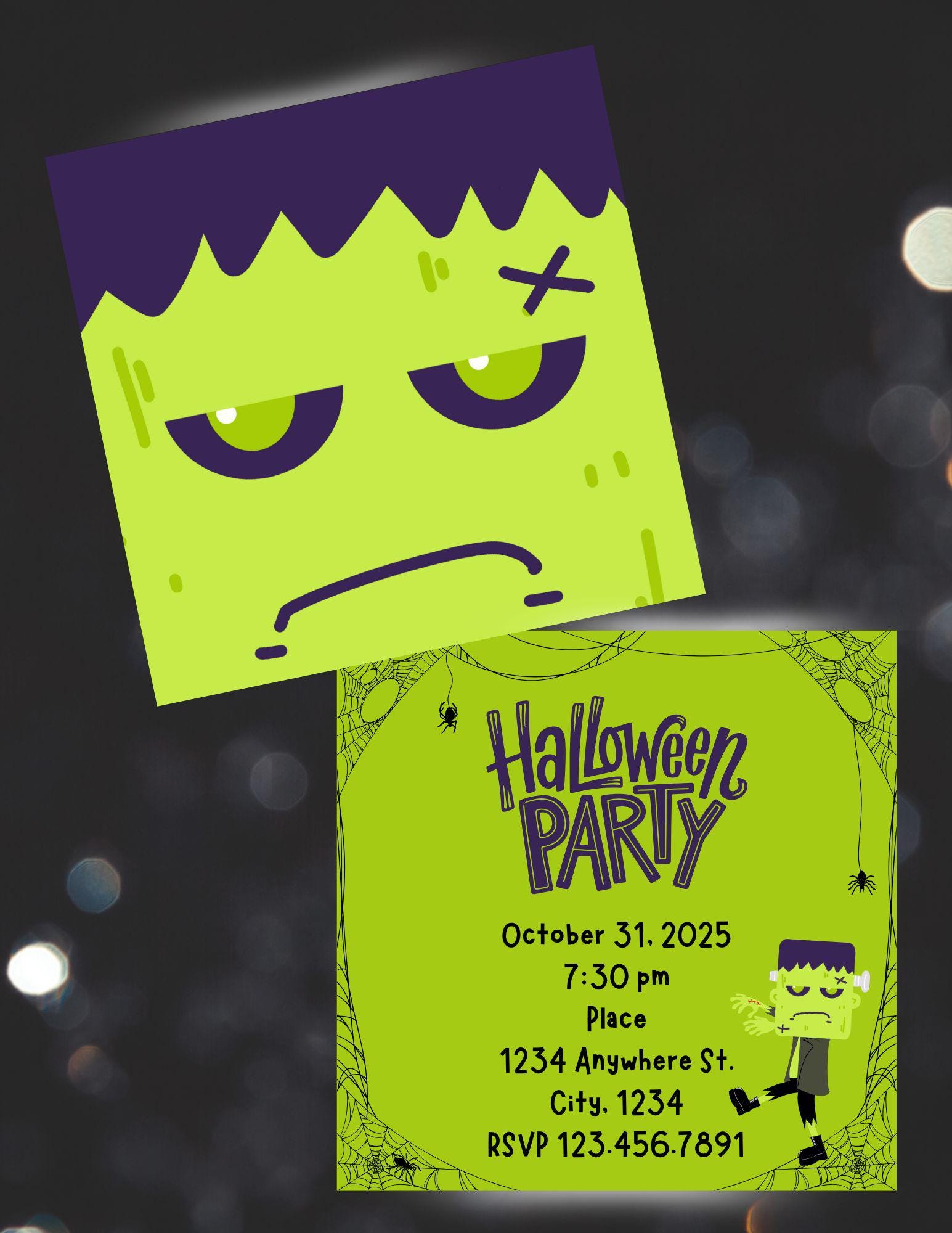 Frankenstein is coming your way. This custom two-sided 5x5 Frankenstein invitation can be edited with your own information.