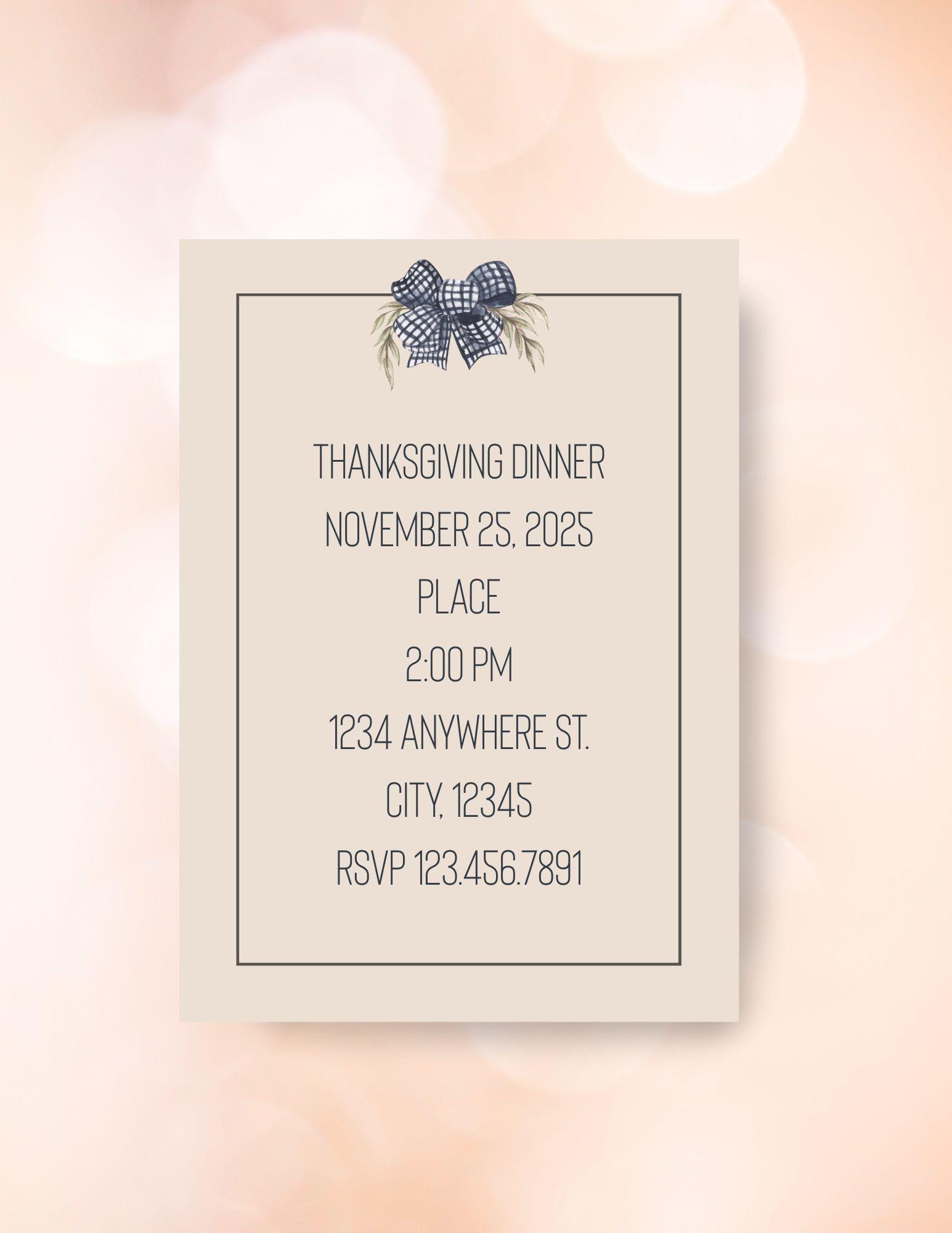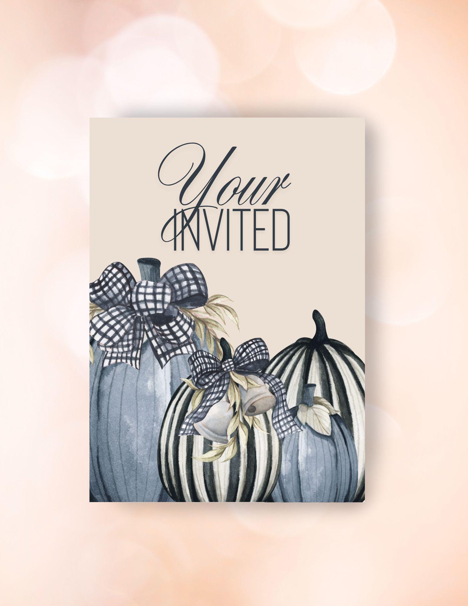 Pumpkin vibes only to this Thanksgiving Dinner. Invite your guests to Thanksgiving with this modern twist of pumpkins invitation. Edit this 5x7 custom two-sided invitation with your own details.