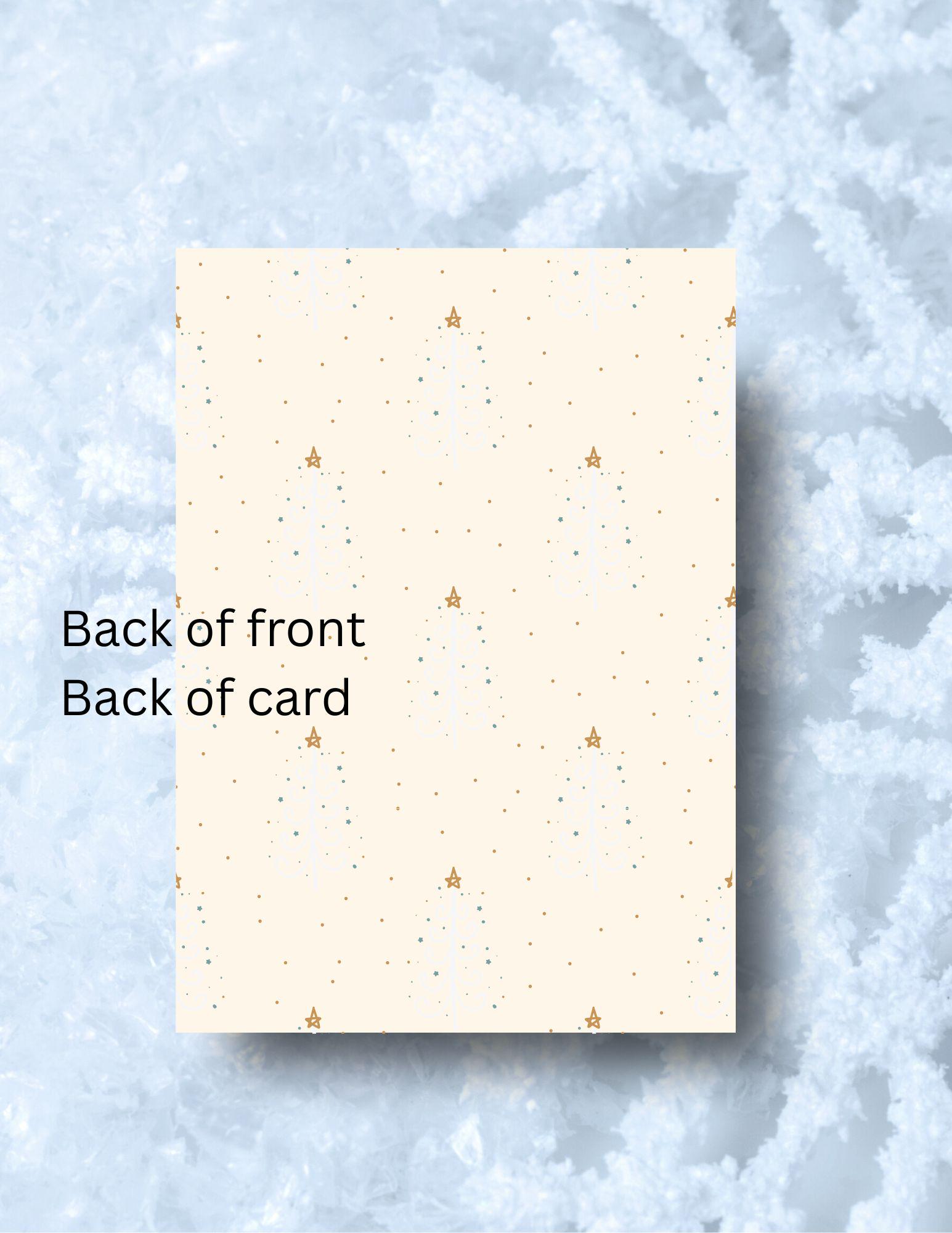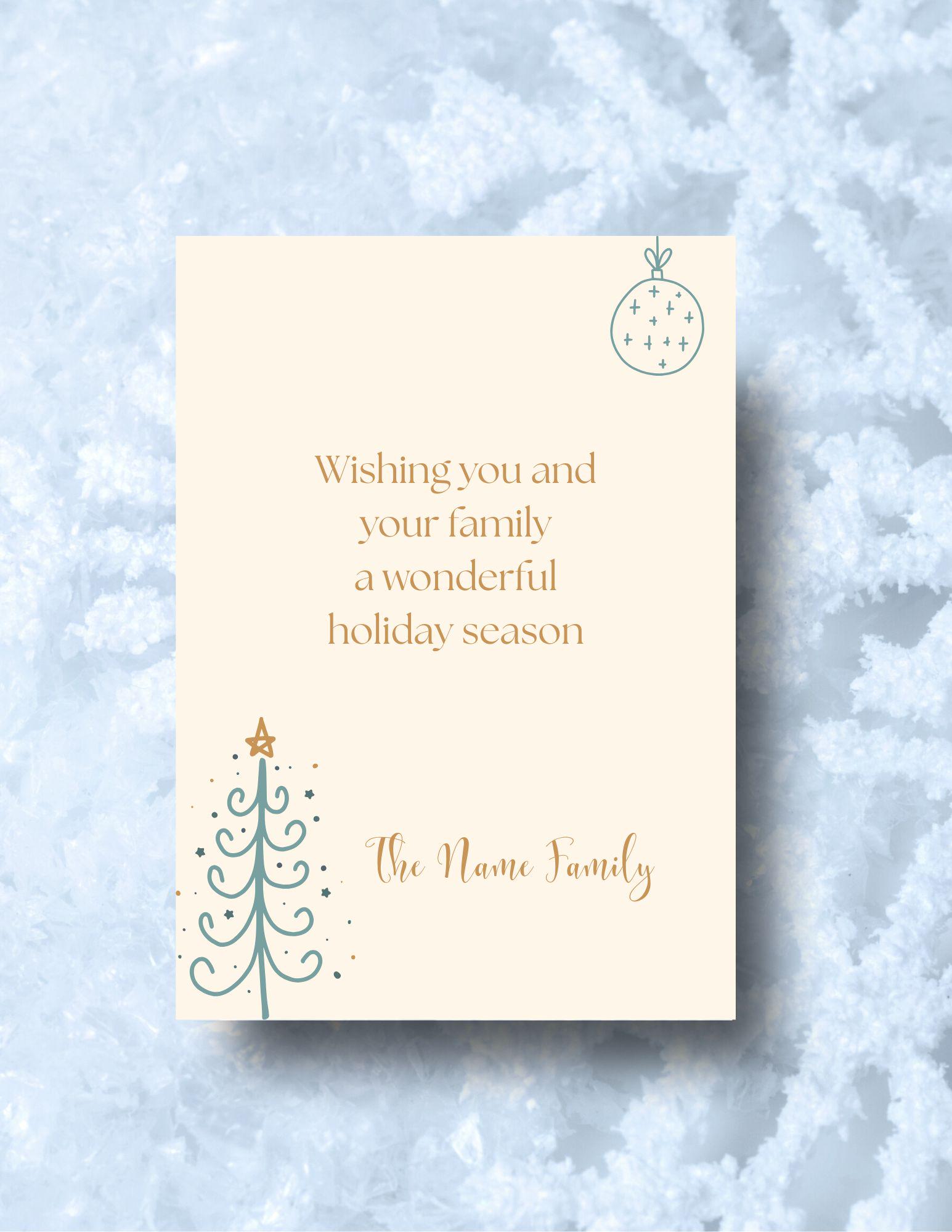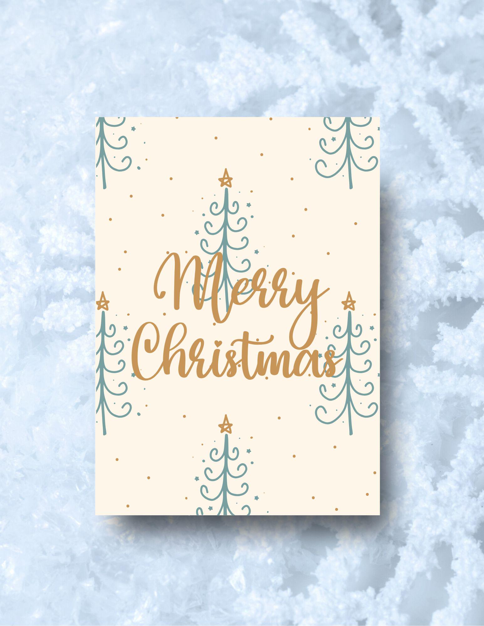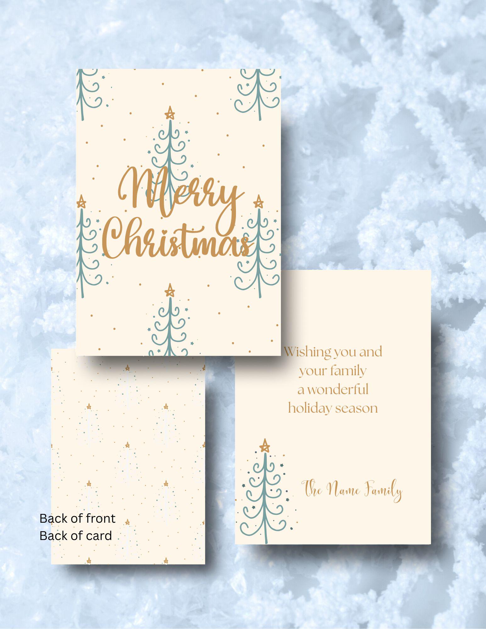 Christmas trees with gold stars makes this card elegant but simple. Edit this custom digital 5x7 Christmas greeting card with your own signature.
