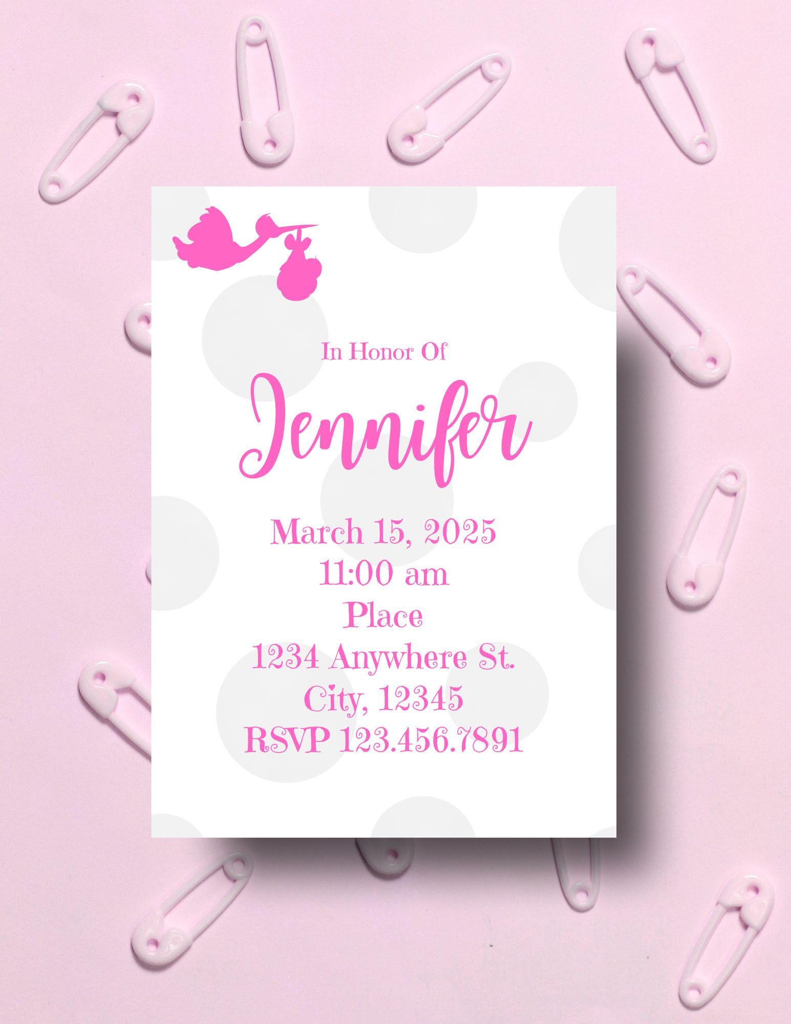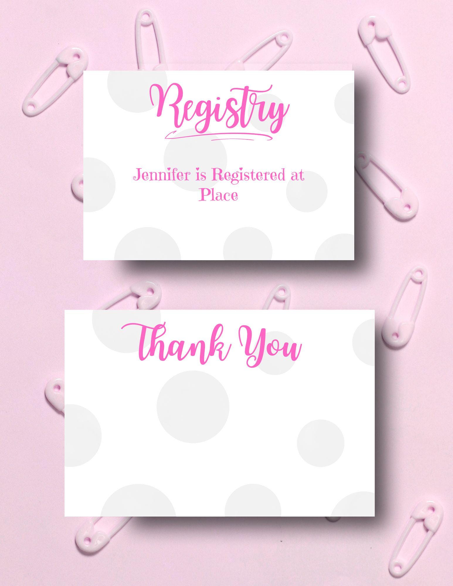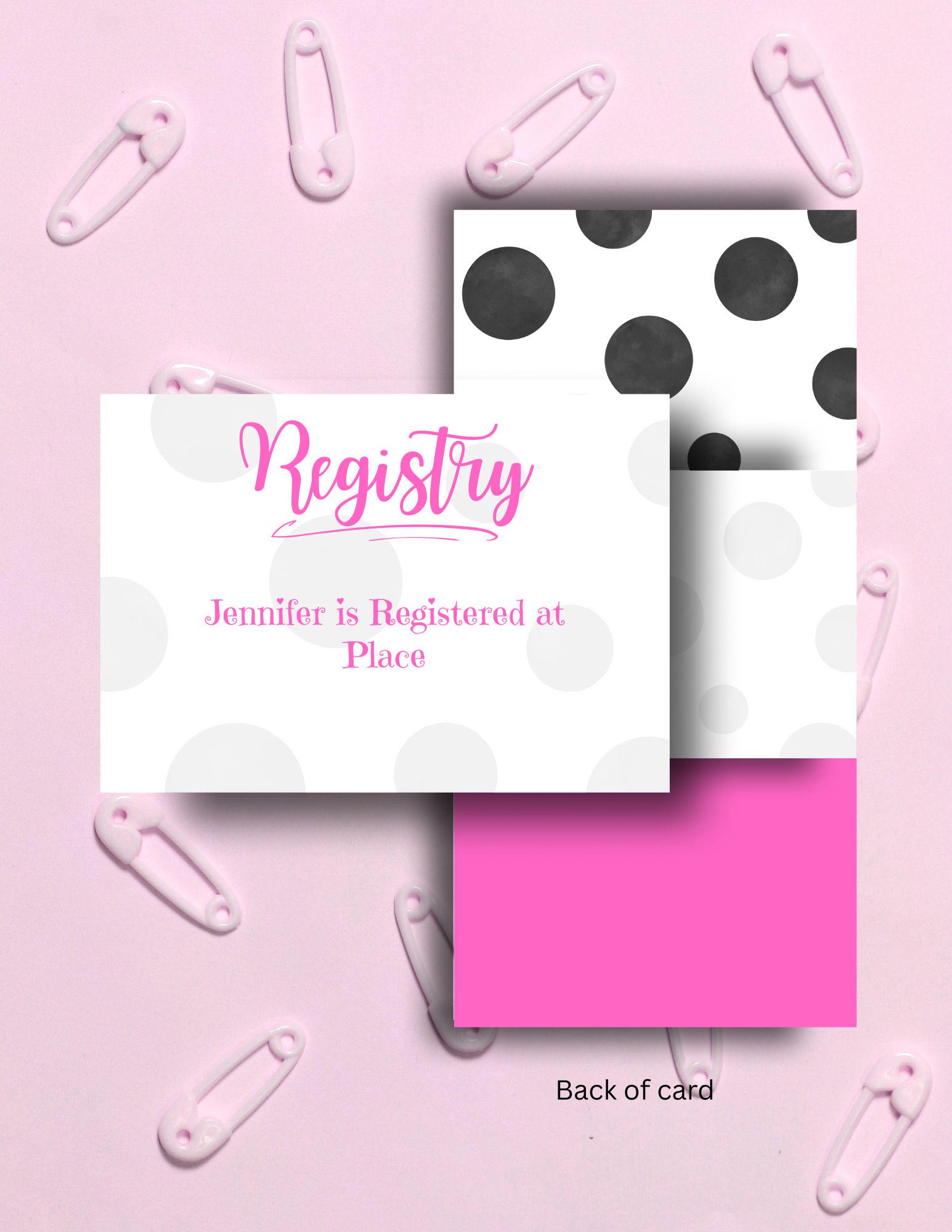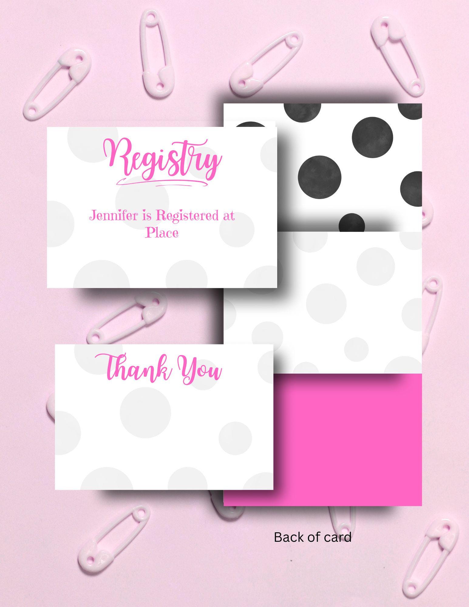 Polka dots and baby dreams - it's a baby shower for the mommy-to-be! Edit this custom baby shower set invitation with your own information. Baby shower invitation, registry card, and thank you card included in set. Pick your backing, leave it white, or pick the color card stock you want to print on.
