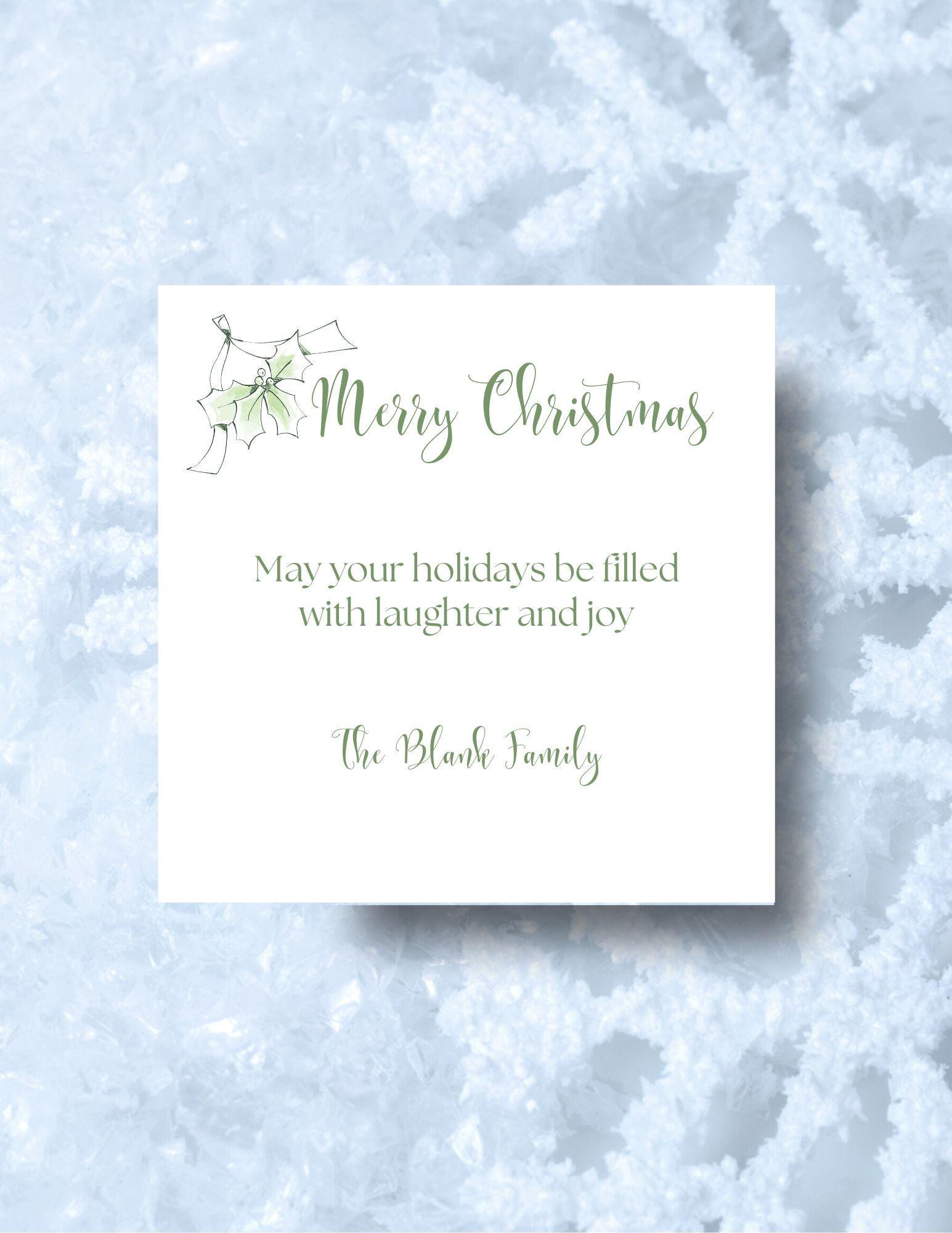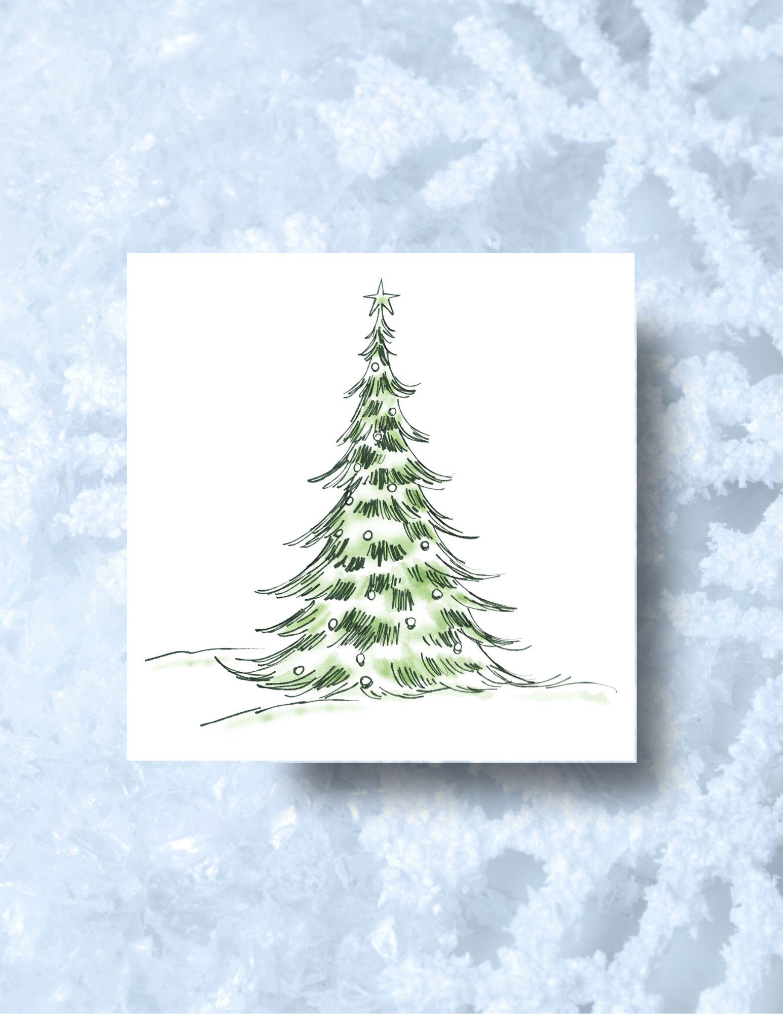 Gather around the tree and smile under the mistletoe. Send friends, family, clients this simple Merry Christmas tree greeting card. Edit this 5x5 custom invitation with your own signature.