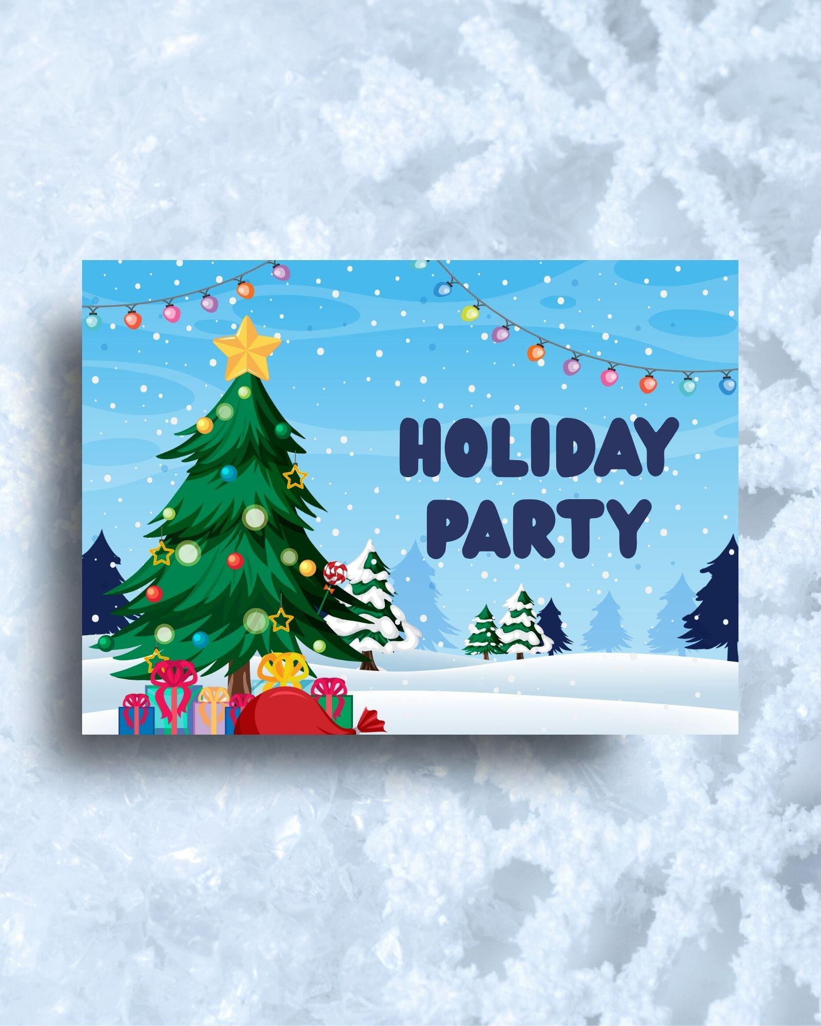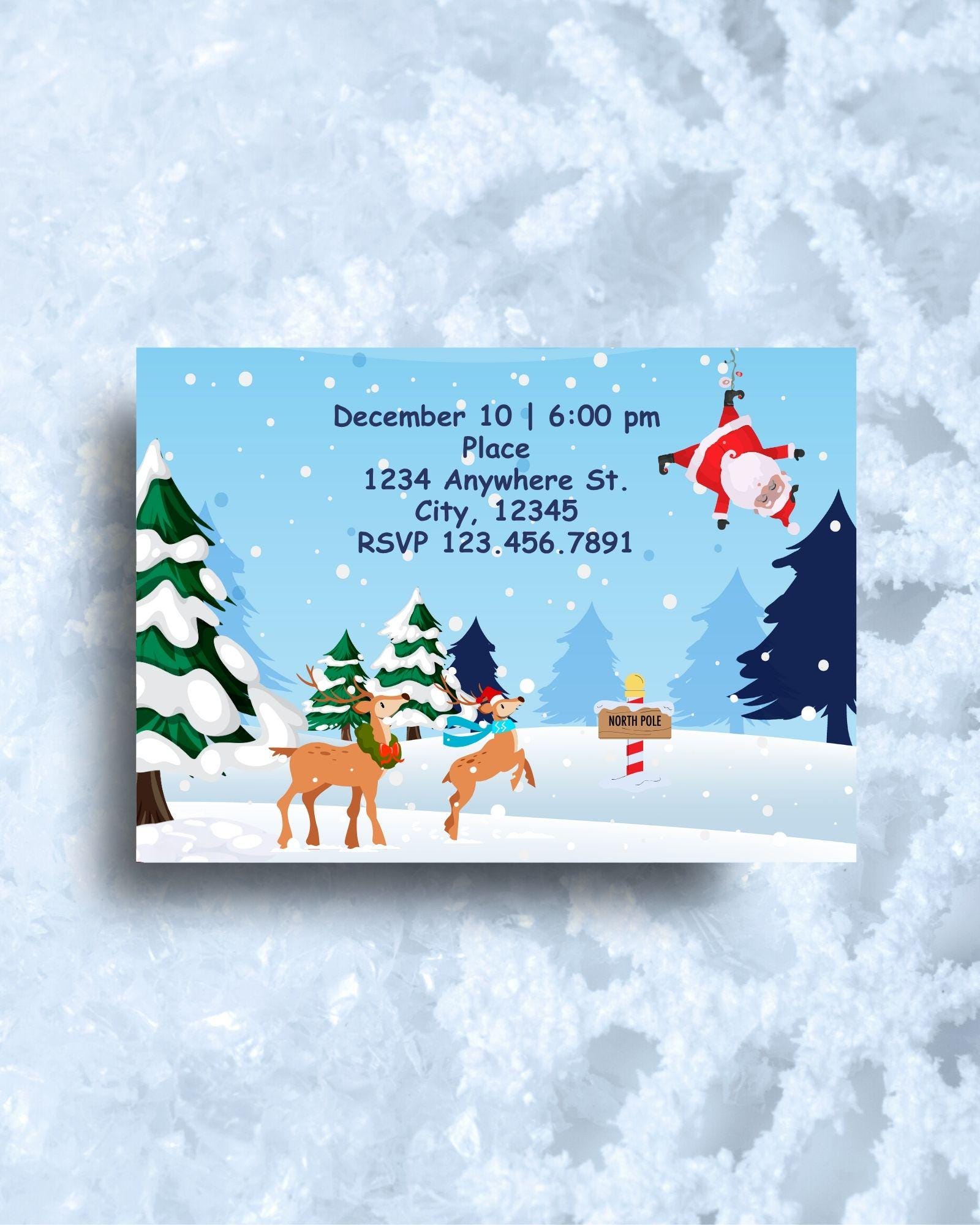 Is that Santa hanging from the Christmas light? Looks like the North Pole is having some fun! Invite friends and family to your party with this fun vibrant colored invitation. Edit this custom 5x7 invitation with your own details.