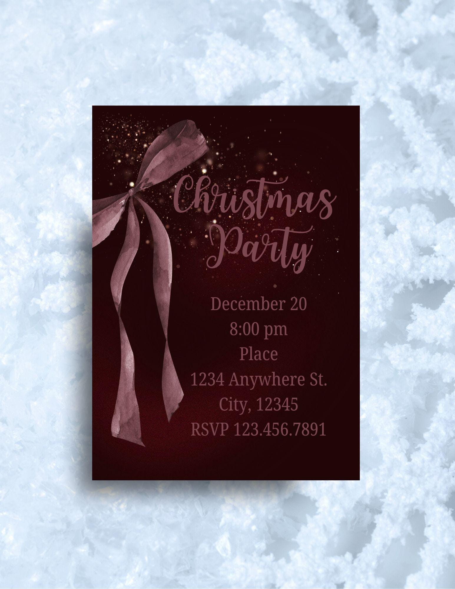 Christmas and a little sparkle makes this card one of a kind. Invite friends and family with this simple elegant custom digital invitation. Edit this 5x7 invitation with your own details.