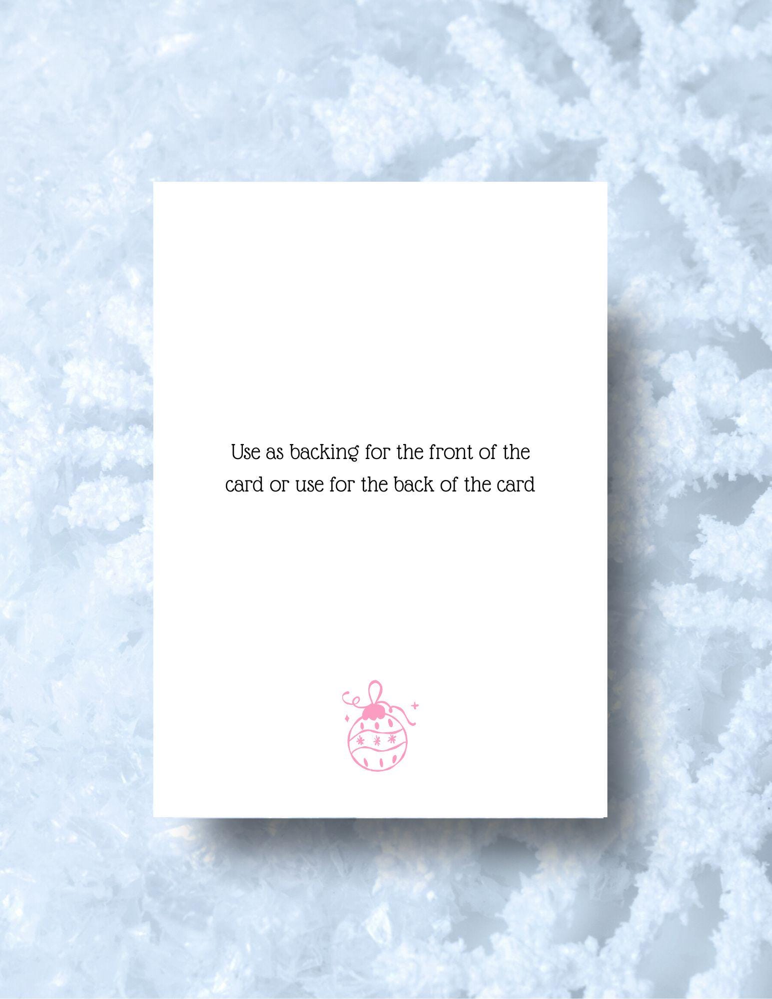 The background border of listing is not included in download only the product will download. Design showing not to scale. The download is the If you prefer not to print the back of the design than it will be a white background unless you use color cardstock.