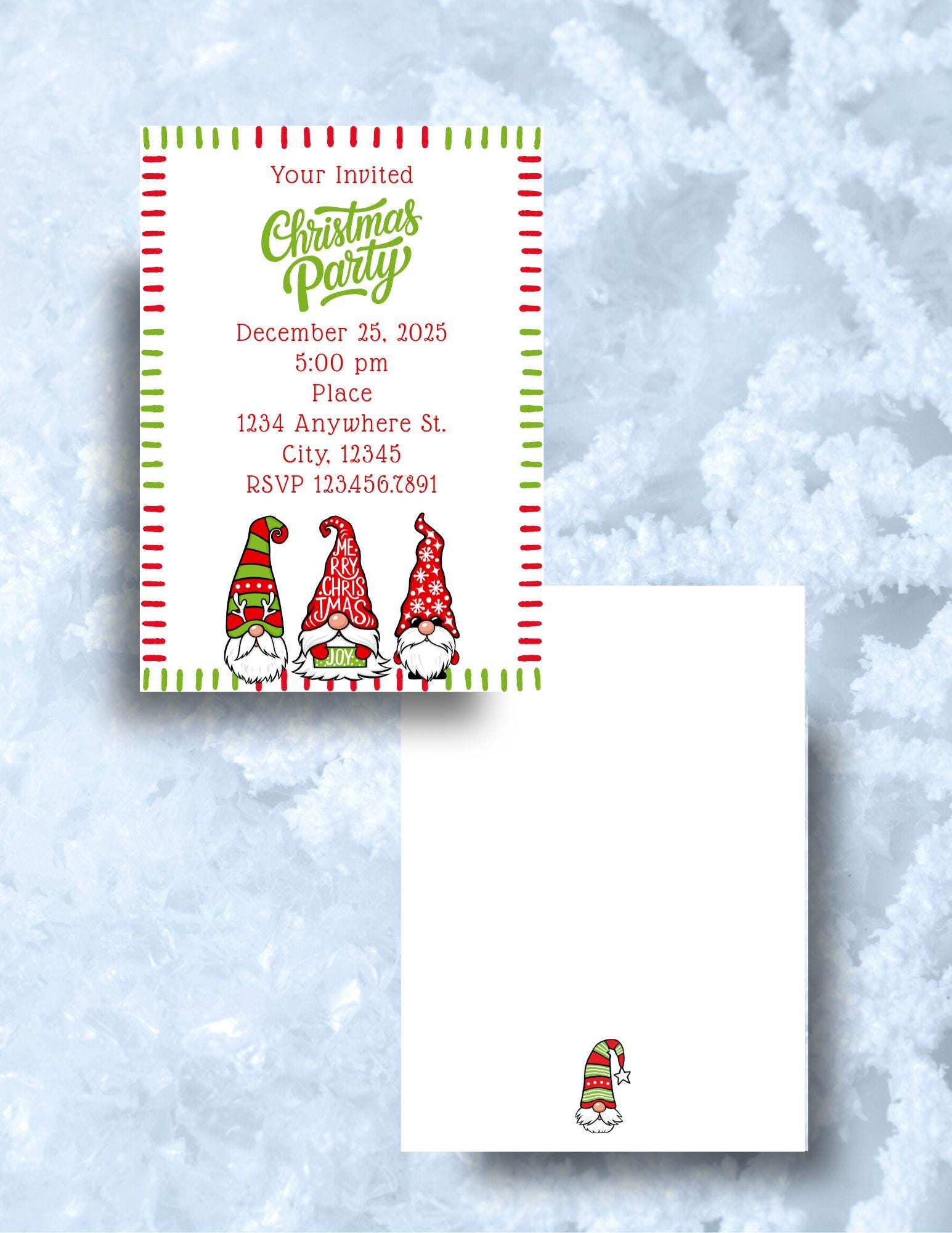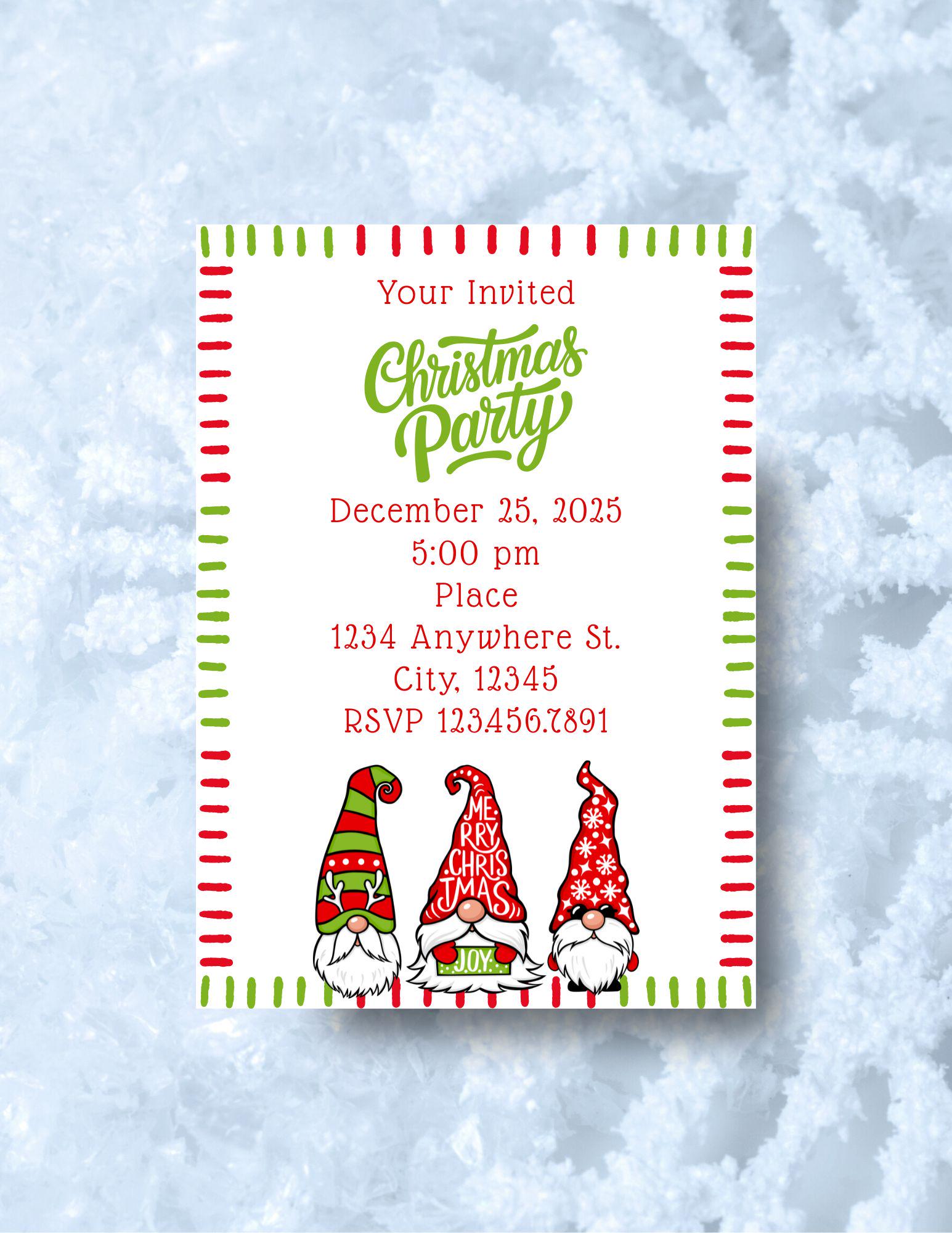 Let's get our gnome on! It's time to party! Invite friends and family with this fun custom 5x7 Christmas party invitation. Edit with your own details.