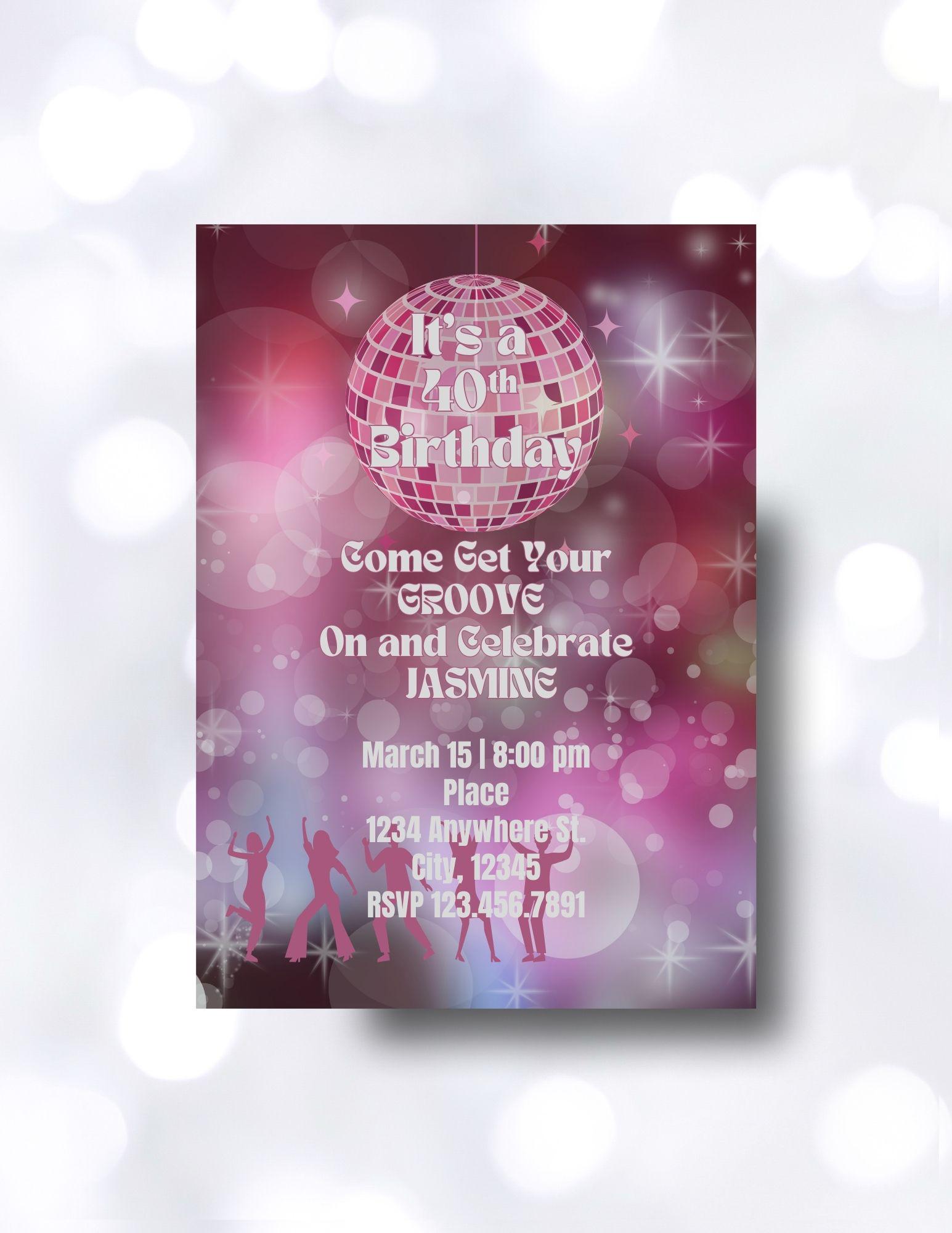 Did someone day "Let's get our groove on"? Disco fever is in the air! Celebrate with friends and family and boogie the night away! This fun vibrant disco invitation will have your guests running to your party. Edit this 5x7 custom digital invitation with your own details.