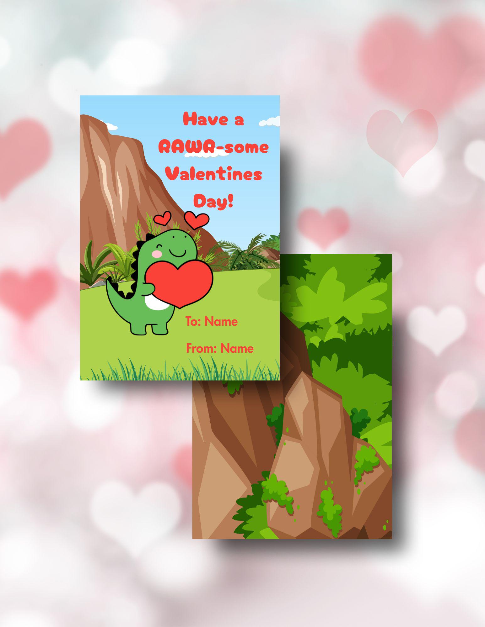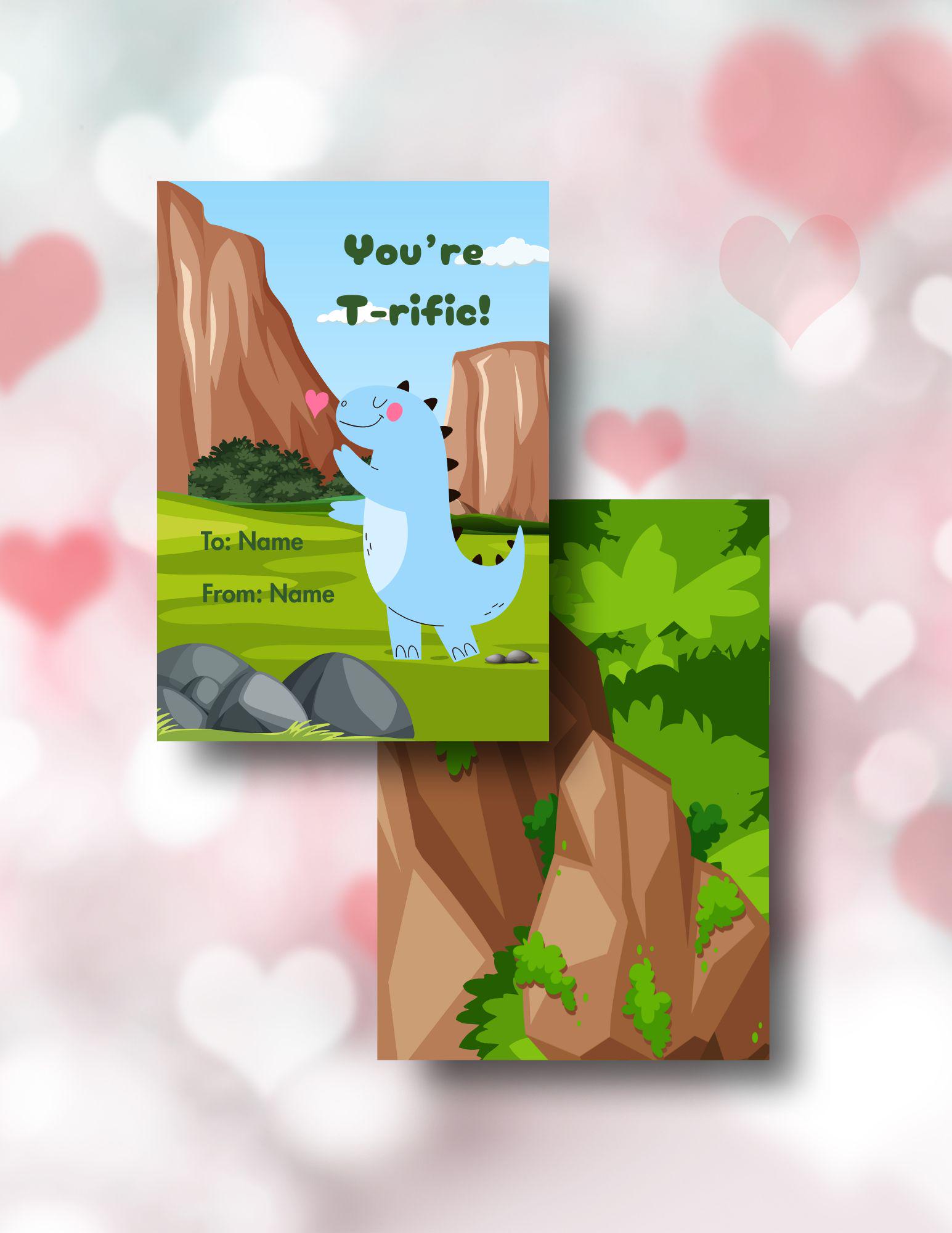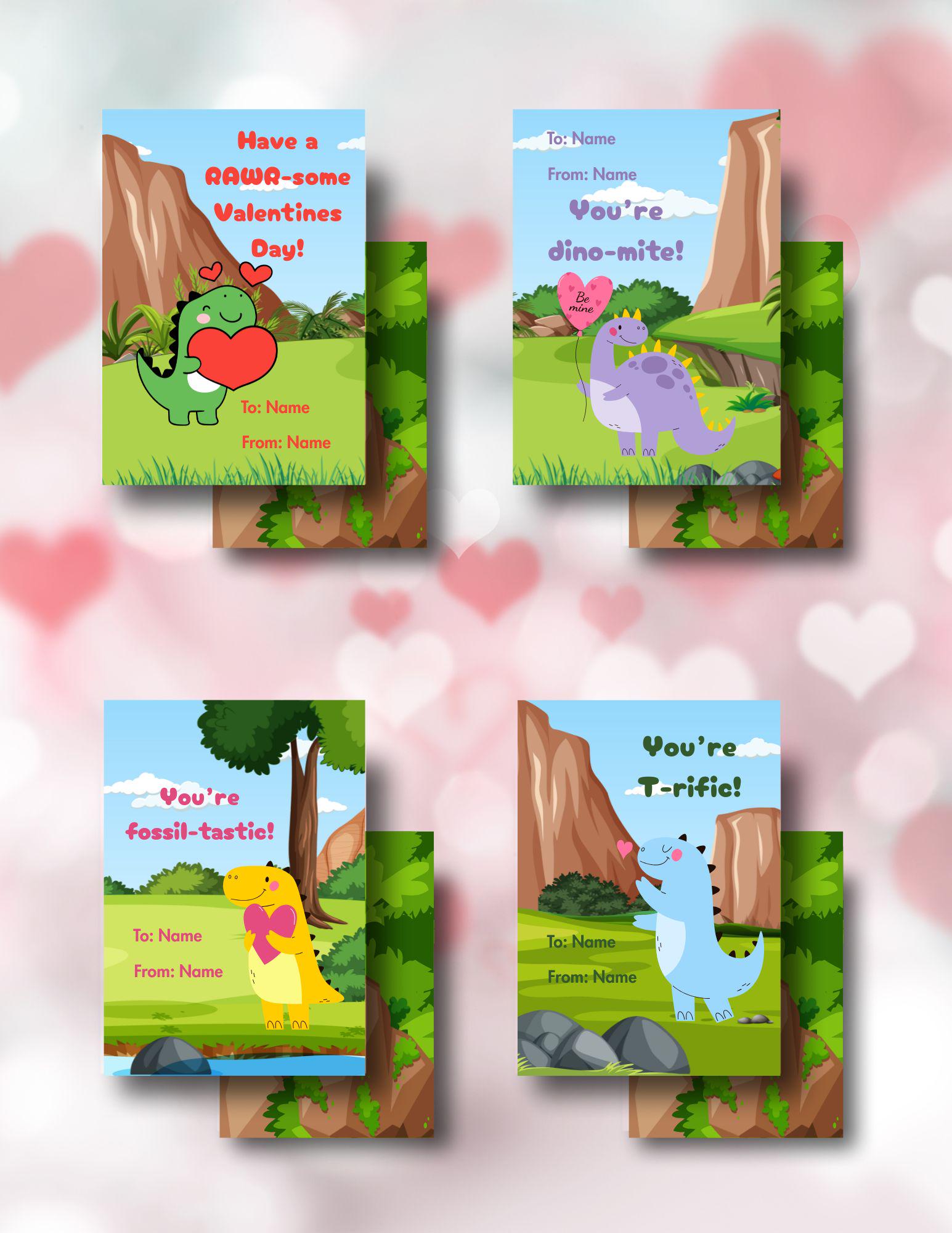 Pass out these custom 3.5x5 Valentine cards that has fun and loveable dinosaurs. This Valentine card set includes four different double-sided cards. Place them in goodie bags or envelopes. Edit the "To:" with any name and the "From:" with your child's name.