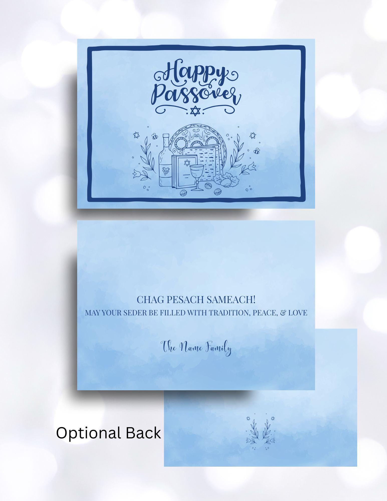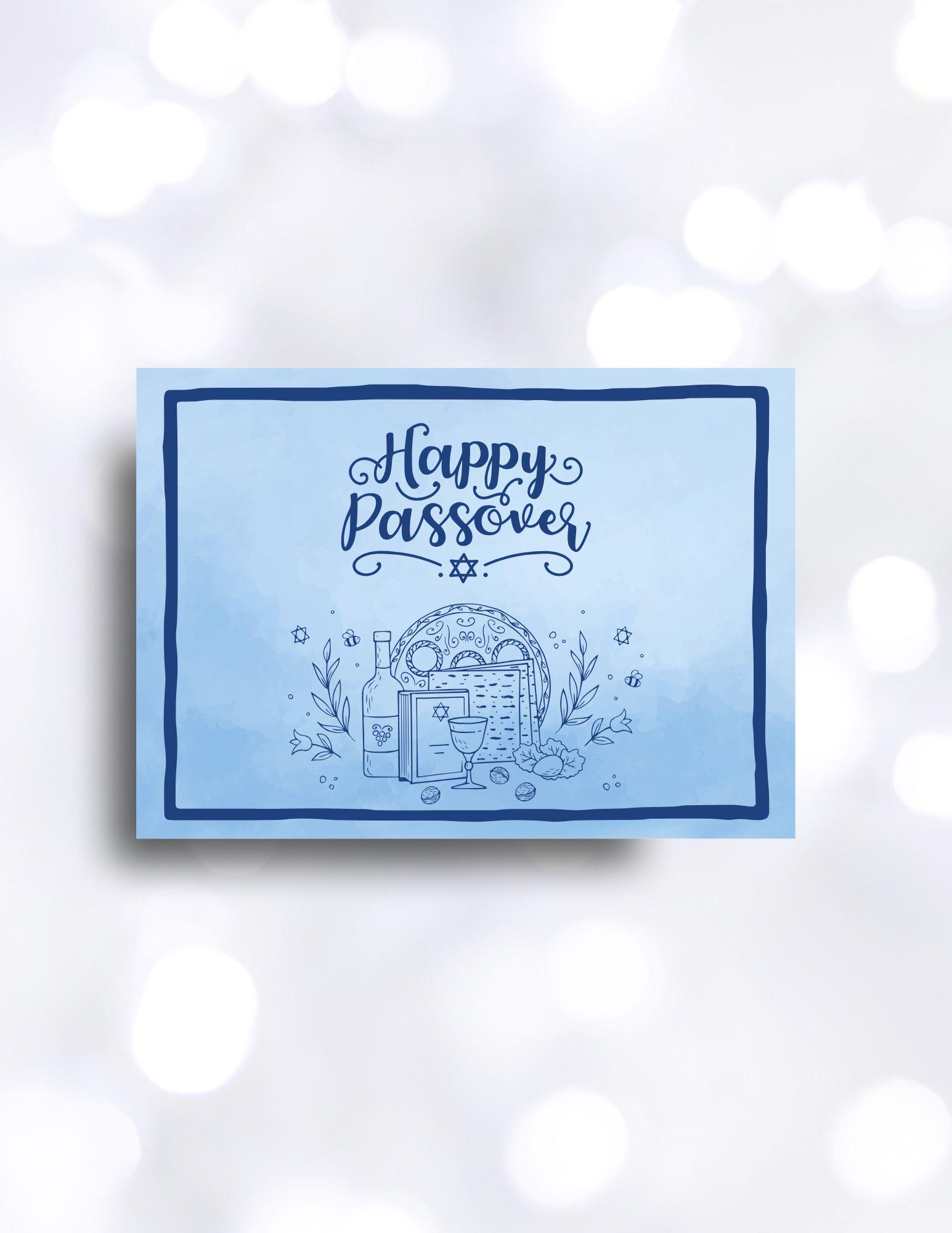 Simple Passover seder fills the front of this card. Let friends and family know how much you mean to them by sending this simple watercolor background greeting card. Edit this 5x7 custom greeting card with your own signature.