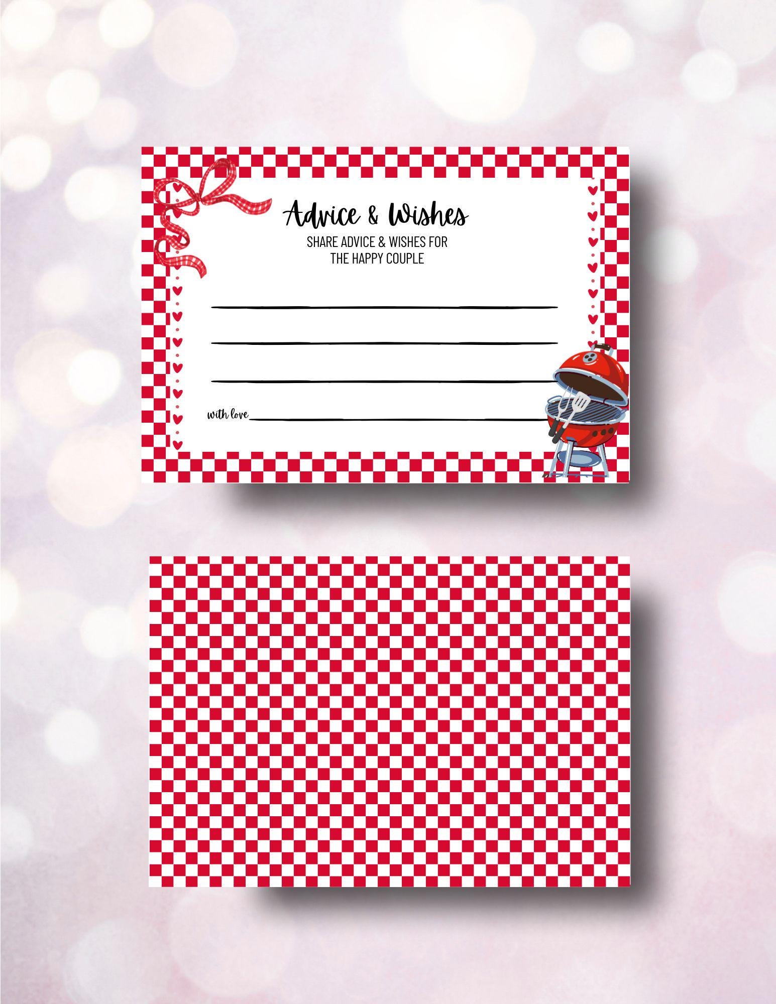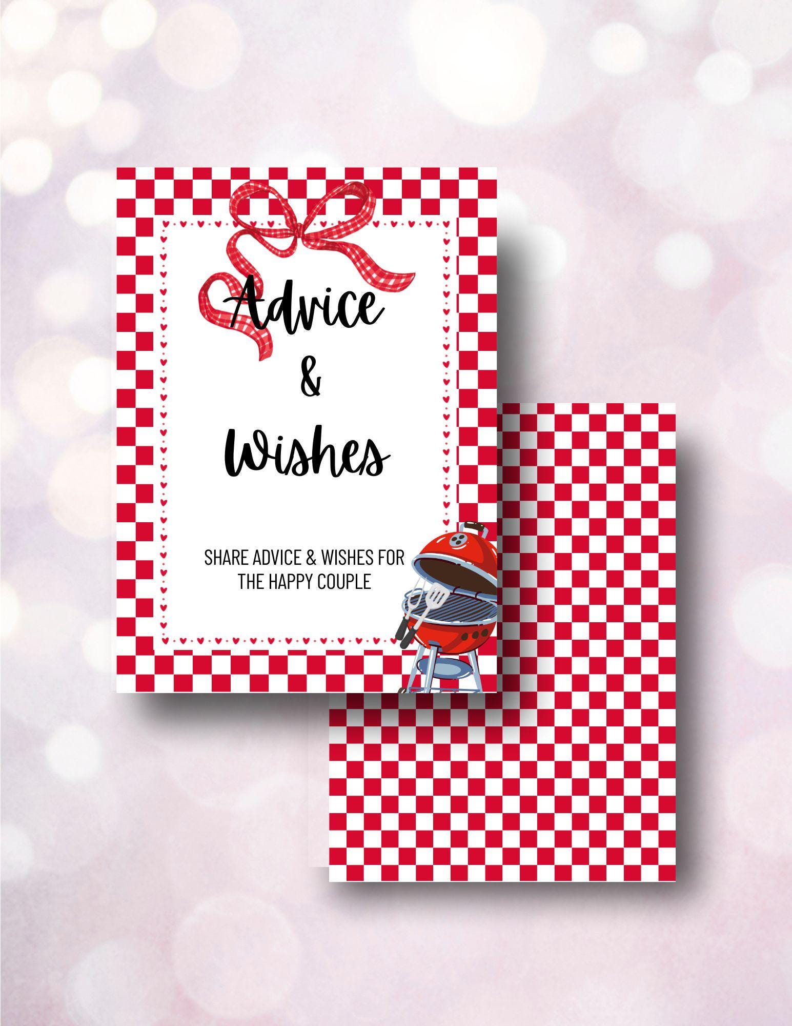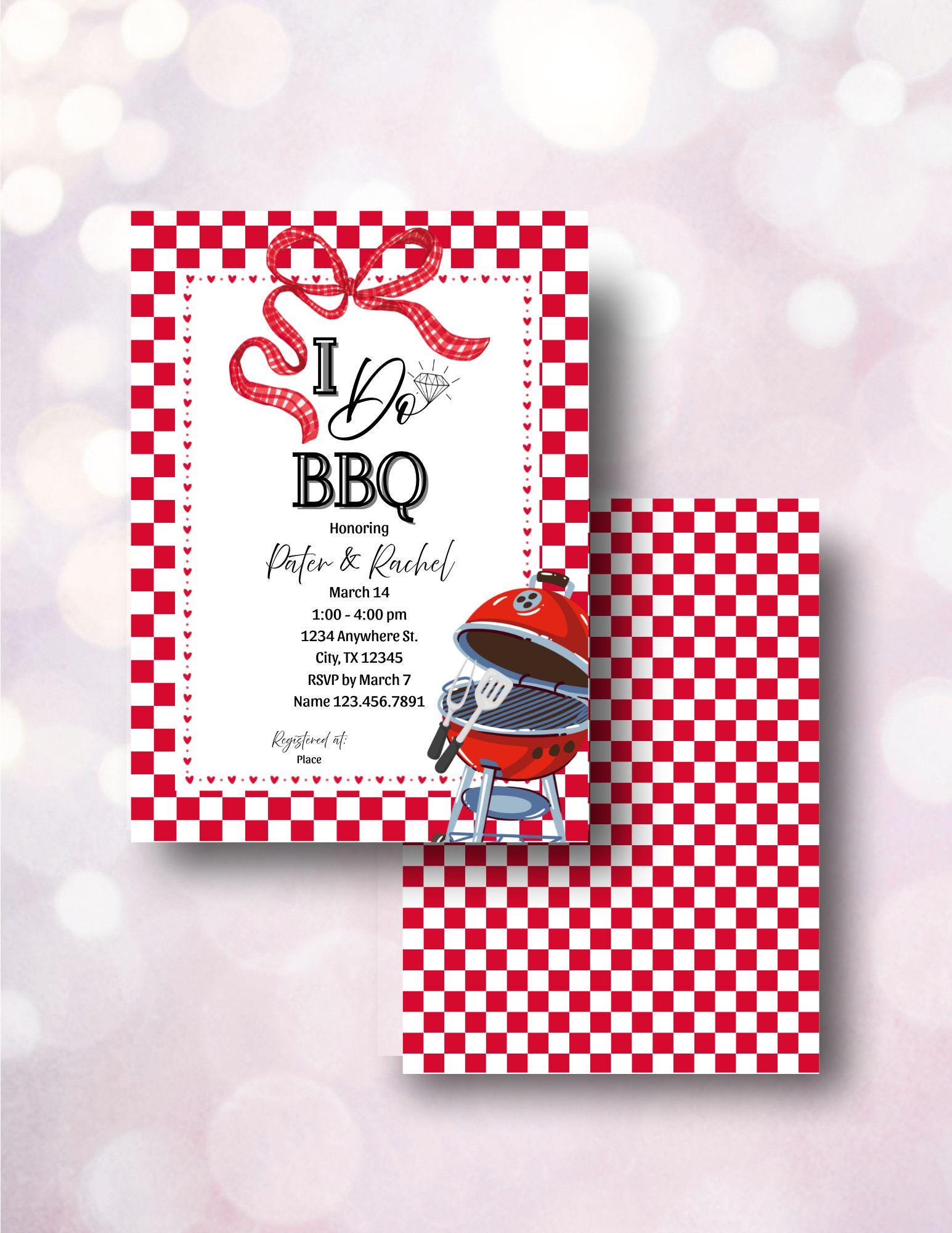 I Do BBQ! Is there any better way to celebrate the future bride and groom than a BBQ?! Invite friends and family to this couples shower with this cute but elegant 5x7 custom invitation. When guest arrive they can fill out the Advice & Wishes card to let the future Mr. & Mrs. know how much they mean to them. This couples shower set includes Invitation, registry card, Advice & Wishes sign (5x7), Advice & Wishes card for guest to write on, and a thank you card. Edit this custom set with your own details. *this is a digital set only.